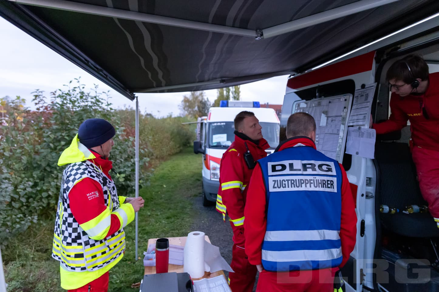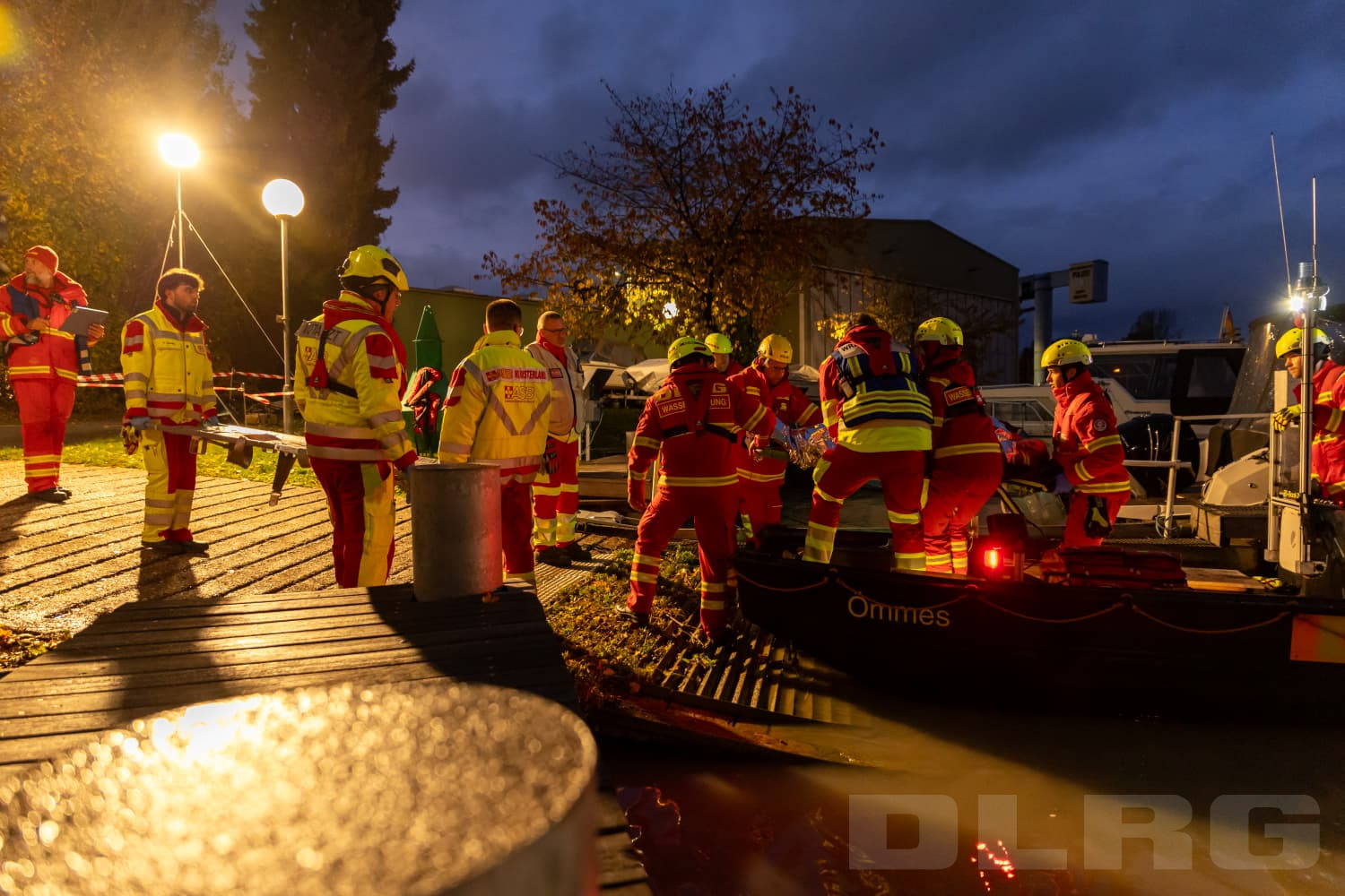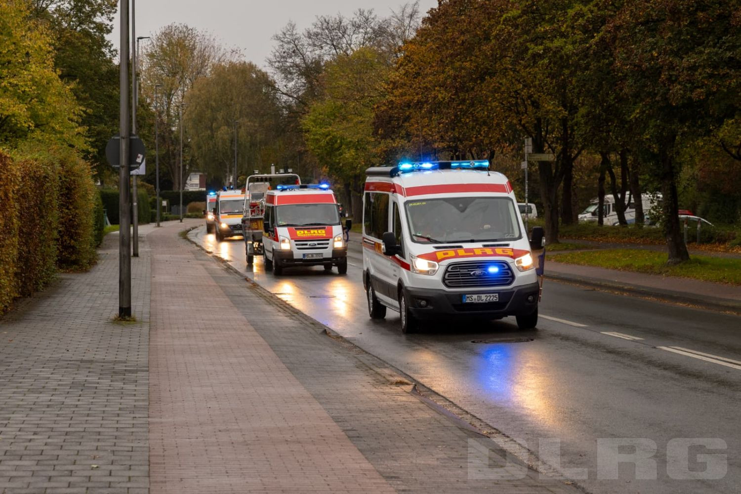 Bereits am Freitagabend (24.10.) um 22:04 Uhr ging über die Alarmierungs-App Divera der Voralarm an die DLRG-Einsatzkräfte im Kreis Steinfurt heraus. Am Samstagmorgen folgte um 8:57 Uhr die offizielle Alarmierung für die Einheiten ST-01 bis ST-10. Hinter diesen Kürzeln verbergen sich die Ortsgruppen Lienen (Führungsfahrzeug), Ibbenbüren (Boot), Greven (Tauchen und Boot), Rheine (Boot), Recke (Boot), Burgsteinfurt (Boot), Emsdetten (Boot), Neuenkirchen/Wettringen (Tauchen) und Altenberge (Tauchen).