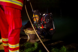 Der zweite Teil des Zug übte eine nächtliche Tauchsuche im Verladehafen Hiltrup, bei der insbesondere die Zusammenarbeit zwischen den Tauchtrupps und der Einsatzleitung trainiert wurde.